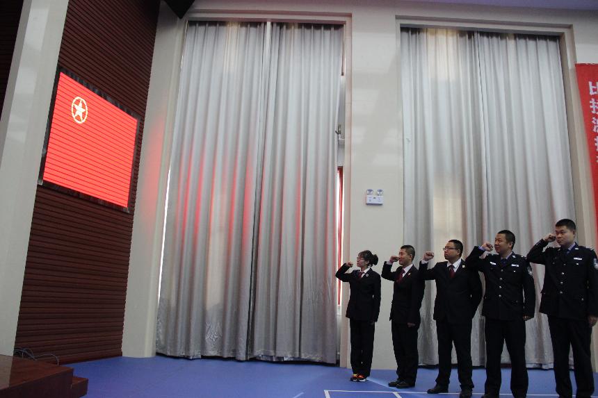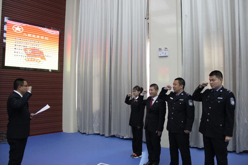 活动中,5名青年干警,面向鲜艳的团旗,紧握右手郑重宣誓,铿锵有力的誓词充分表达了检察干警对检察事业的深挚感情。